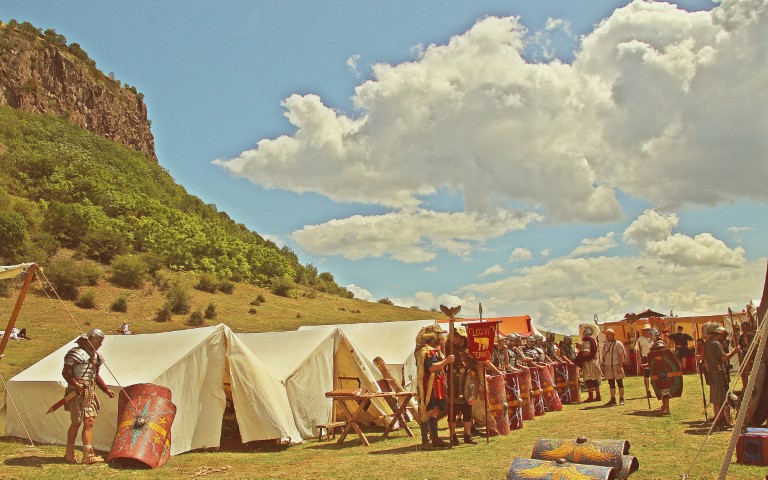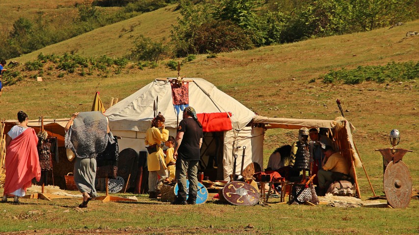 Sâmbăta începe domol pe platoul unde se desfășoară festivalul. În partea stângă, descoperi tabăra romană cu castrul apărat de șanțuri și drugi de metal, plus corturile gladiatorilor și cele ale civililor unde poți învăța o mulțime de lucruri interesante de la Florina Poenar și fetele din Terra Dacica Aeterna.