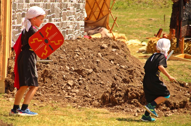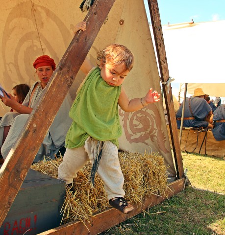Pentru micuţi, DacFest nu este altceva decât un imens loc de joacă, unde fiecare om ţi-e neam bun şi îţi poartă de grijă. Cu ochii după cei mari, vlăstarele festivalului se aleargă, se altoiesc cu bulgări din valurile de pământ, ridică săbii şi scot ţipete mai stridente decât toată hoarda de luptători.