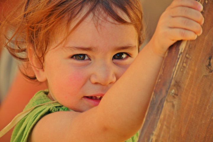 Îmbrăcat într-o cămeșoaie albă, cu picioarele goale, copilul oferă lumii o imagine memorabilă.