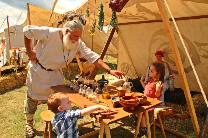 Vizitatorii nici nu știu la ce să privească: la bucuria copiilor sau la spectacolul stârnit de gladiatorii TDA din Ludus Ursus Nigrus, care se antrenează în apropiere. Dacă ajungi la DacFest și îți place istoria, nu ai cum să îți iei un răgaz, mereu se întâmplă câte ceva.