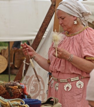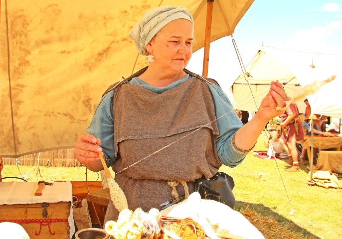 Fuiorul de lână se prinde în partea de sus, iar, cu ajutorul unui fus, se realizează torsul şi iese un fir mai subţire decât cel obținut pe furca clasică. Firul era folosit la cusut şi la ţesut. Noi, reenactorii, aşa colaborăm cu arheologii: ei studiază şi noi lucrăm.