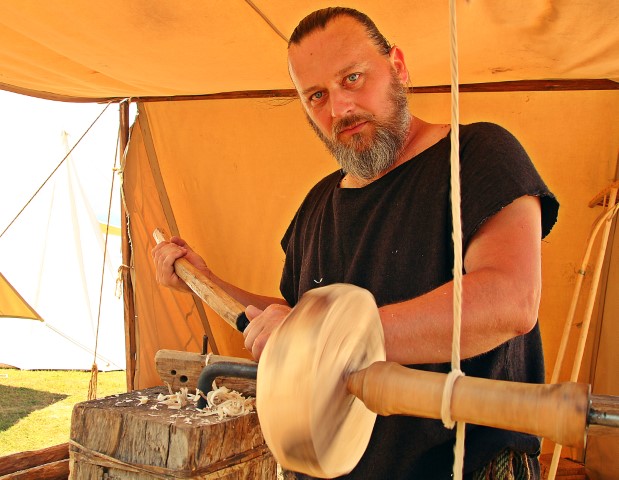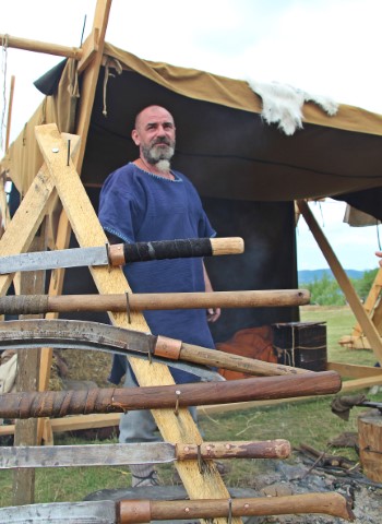 Cipri a rămas la lemn și, cât e festivalul, lucrează mereu, în afara timpului cât e luat în armata dacilor.