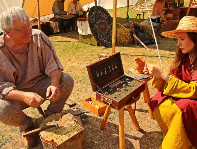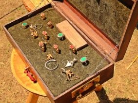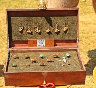 Alături o cutie superbă etalează rânduri de bijuterii, uluitoare replici după cele antice. Nişte cercei dacici şi o suită de inele romane te fac să tânjeşti chiar dacă nu eşti genul care umblă cu degetele împodobite. „Aurificina dacica” a adus la DacFest primele replici de bijuterii antice din aur şi argint cu pietre semiprețioase nefaţetate.