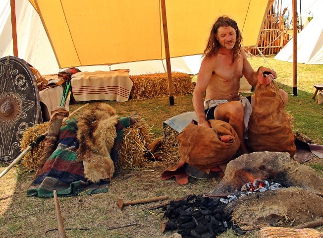Când cei din festival fac câte-o pauză de la munca în ateliere, pleacă să se bucure de munca colegilor. Din fața focului, fierarul ajunge la tir cu arcul.