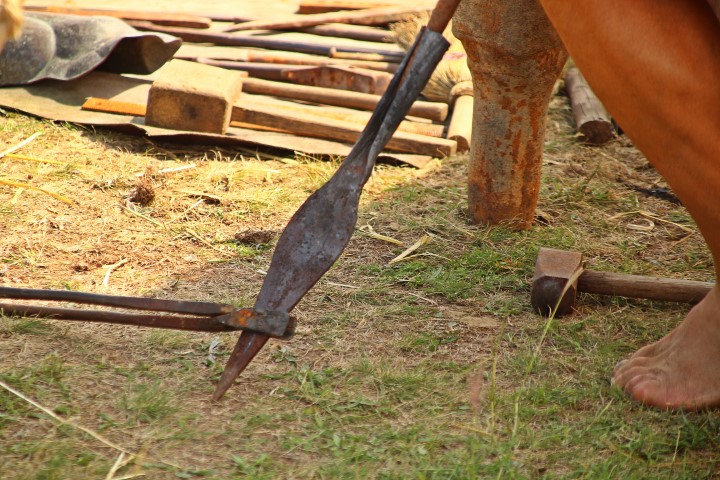 Alesio apasă cu spor pe burdufii de piele, cu atâta putere, încât jerbe groase de scântei ţâşnesc pe gura vetrei şi îl fac pe Andrei Mihai să sară ca … ars. După ceva vreme, meşterul Oroles decide că metalul s-a topit şi, cu ajutorul unor cleşti lungi, apucă recipientul şi toarnă cu atenţie metalul topit: „Sunt aici 1.100 de grade, torn în forme cât este nevoie, apoi surplusul îl pun deoparte, în alt recipient ca să îl refolosesc.”