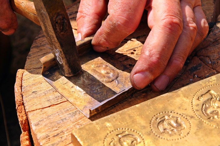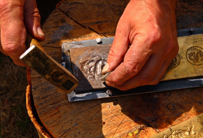 Se bucură de ea şi Paul Cheptea în atelierul unde, pe o faţetă metalică reconstituită după matriţa descoperită la Sarmizegetusa Regia, bate de zor deasupra unei bucăţi de alamă. Are un ritm copleşitor.