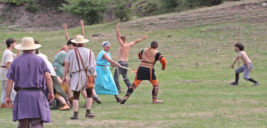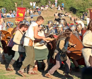 Arcașul Constantin Vlăsceanu e nerăbdător: „Păcat că romanii sunt prea puțini. E și cald, până îi omorâm pe toți ne va lua multă vreme! Pământu-i tare că nu a plouat destul… Glumesc, suntem prieteni. În viața reală, nu ne omorâm, ne mai dăm peste degețele, mai pica câte un dinte, dar amical, așa „Cătălin Borangic – Dada – îl cheamă pe un copil cu fluierul să le cânte dacilor tocmai când trupele auxiliarilor se apropie de cele ale barbarilor şi se pregătesc să atace o aşezare a sarmaţilor. Duras are 11 ani şi este în festival cu cei din Garda Apulum.