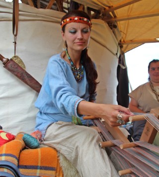 În sătuc, dăcițele au și ele mult de lucru la atelier, pe războiul antic vertical: ”Acum urzim, instalăm practic firele pe război, iar, în partea de jos, sunt greutăţi de lut pentru a le ţine tensionate. Acest gen de instalaţie se folosea în preistorie, în antichitate, până şi vikingii şi romanii au folosit-o.