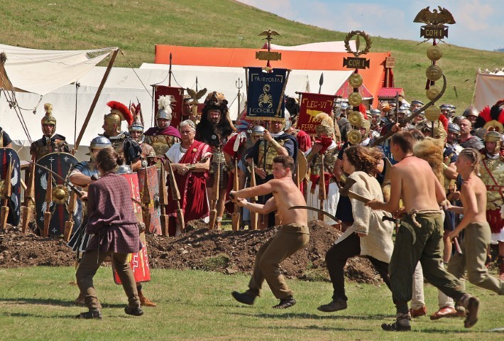Dacii şi romani se înfruntă ca la carte. Conducătorul barbarilor este Marius Ardeleanu de la Omnis Barbaria ce îl întruchipează pe Regele Decebal şi îşi comandă căpeteniile precum Cătălin Drăghici de la Historia Renascita sau Marcel Popescu de la Lupii Apoulonului.