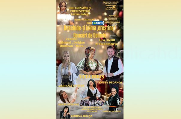Duminică, 21 decembrie 2025, de la ora 16:00, Centrul Cultural „Drăgan Muntean” din Deva devine gazda unei seri de colinde menite să sprijine persoanele aflate în nevoie și să reunească comunitatea în jurul generozității – ,,Deschide-ți inima, creștine!”