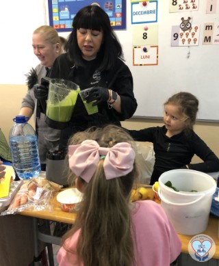 Cu o mână de ajutor din partea copiilor, Raluca Todea a preparat pe loc un smoothie delicios, verde și energizant – din banane, kiwi, spanac, lămâi și suc de mere, care a oferit participanților o porție serioasă de vitamine și energie, în combinație cu bastonașe de morcov crud, pe care copiii le-au ronțăit după ce au aflat că leguma portocalie, cultivată în toată lumea pentru gustul dulce și valoarea nutritivă ridicată, sprijină imunitatea și îmbunătățește digestia și sănătatea ochilor, inimii, pielii și creierului.
