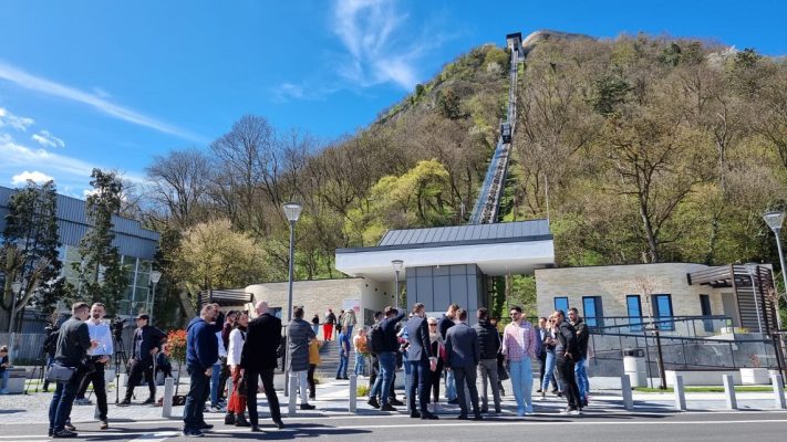 Astăzi, 29 martie 2024, Telecabina care facilitează accesul în Cetatea Deva a fost pusă în funcțiune și este disponibilă pentru cei care vizitează monumentul istoric.