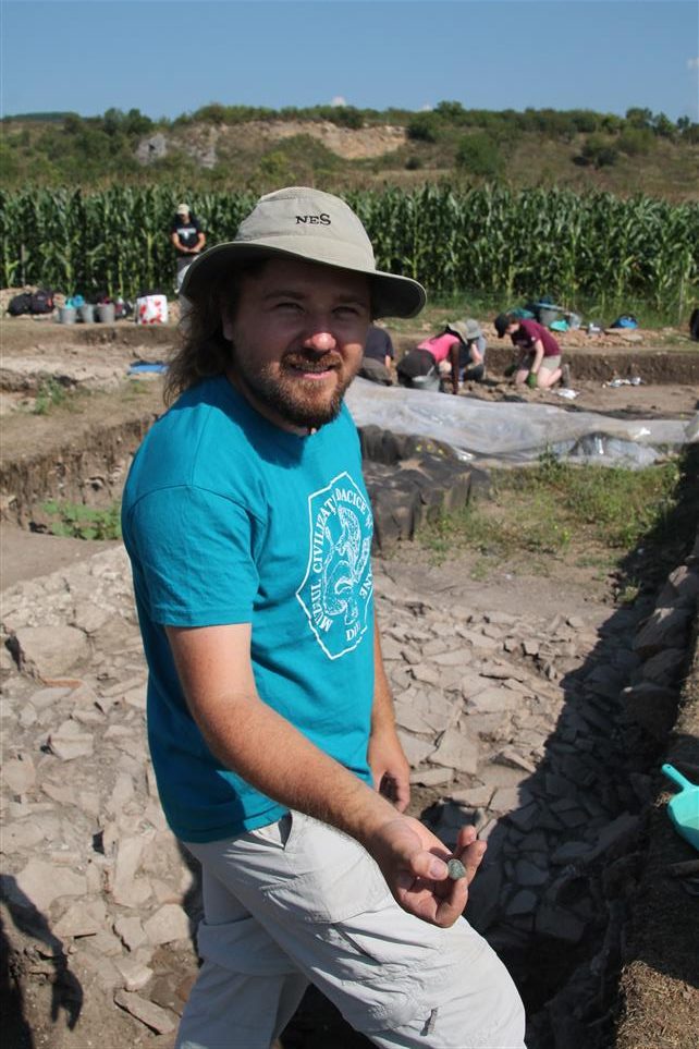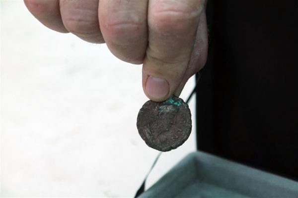 Într-un colţ de şantier, unde tinerii au dat la o parte pământul de pe un străvechi acoperiş prăbuşit, apare un contur rotund. E cu siguranţă o monedă romană. Bucuria studentului american e molipsitoare şi toţi cercetătorii se apropie să vadă descoperirea. „Do you see any markings on it?”, întreabă de sus un altul. „Vezi ceva semne pe ea? Este vreun portret, vreo figură sau ceva litere pe monedă?” Cu o pensulă, studentul îndepărtează cu atenţie pământul din jur şi încearcă să zărească ceva prin uzura vremii: „Nu pe partea aceasta. Pe partea cealaltă, ar putea fi ceva. Aş face bine să fac câteva fotografii acum, înainte să o scoatem. Trebuie să fac câteva măsurători”, vine răspunsul. „Good job! Looks good!”, este felicitat eroul zilei de pe şantier. Bănuţul antic adună roată arheologii şi profesorii de istorie. Moneda este iscodită din toate părţile.