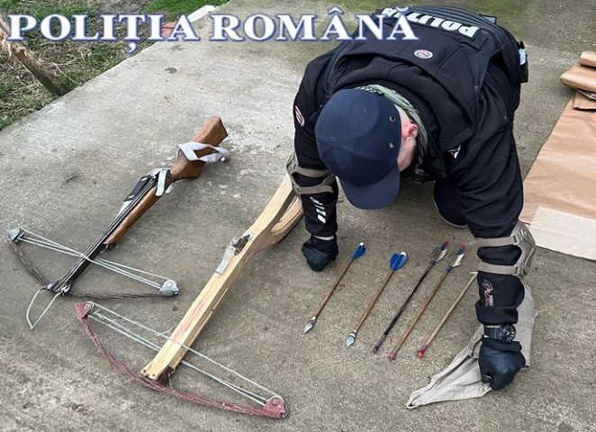 La data de 23 februarie 2024, polițiștii Serviciului Arme Explozibili și Substanțe Periculoase Hunedoara și Serviciului Criminalistic din cadrul Inspectoratului de Poliție Județean Hunedoara, au efectuat o percheziție domiciliară pe raza localității Geoagiu, județul Hunedoara, la locuința unui bărbat, ocazie cu care au fost identificate ca fiind deținute fără drept, două arbalete confecționate artizanal, un număr de 4 bucăți butelii CO2 nepercutate și un număr de 5 bucăți săgeți confecționate artizanal cu vârfuri metalice.