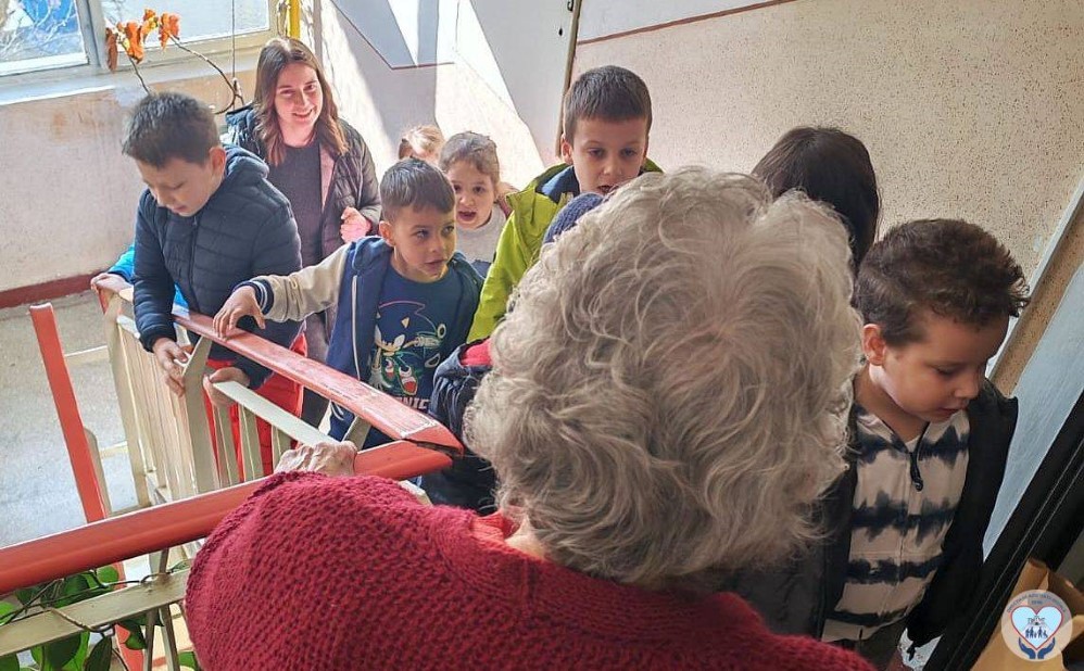 Acțiunea preșcolarilor a coincis și cu o aniversare. Una dintre persoanele vizitate a împlinit 80 de ani, iar copiii i-au cântat „La mulți ani!”.