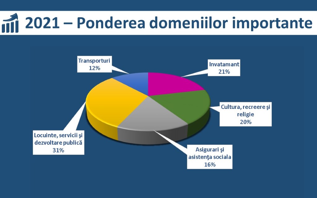Principalele domenii de dezvoltare și ponderea lor în bugetul general sunt: