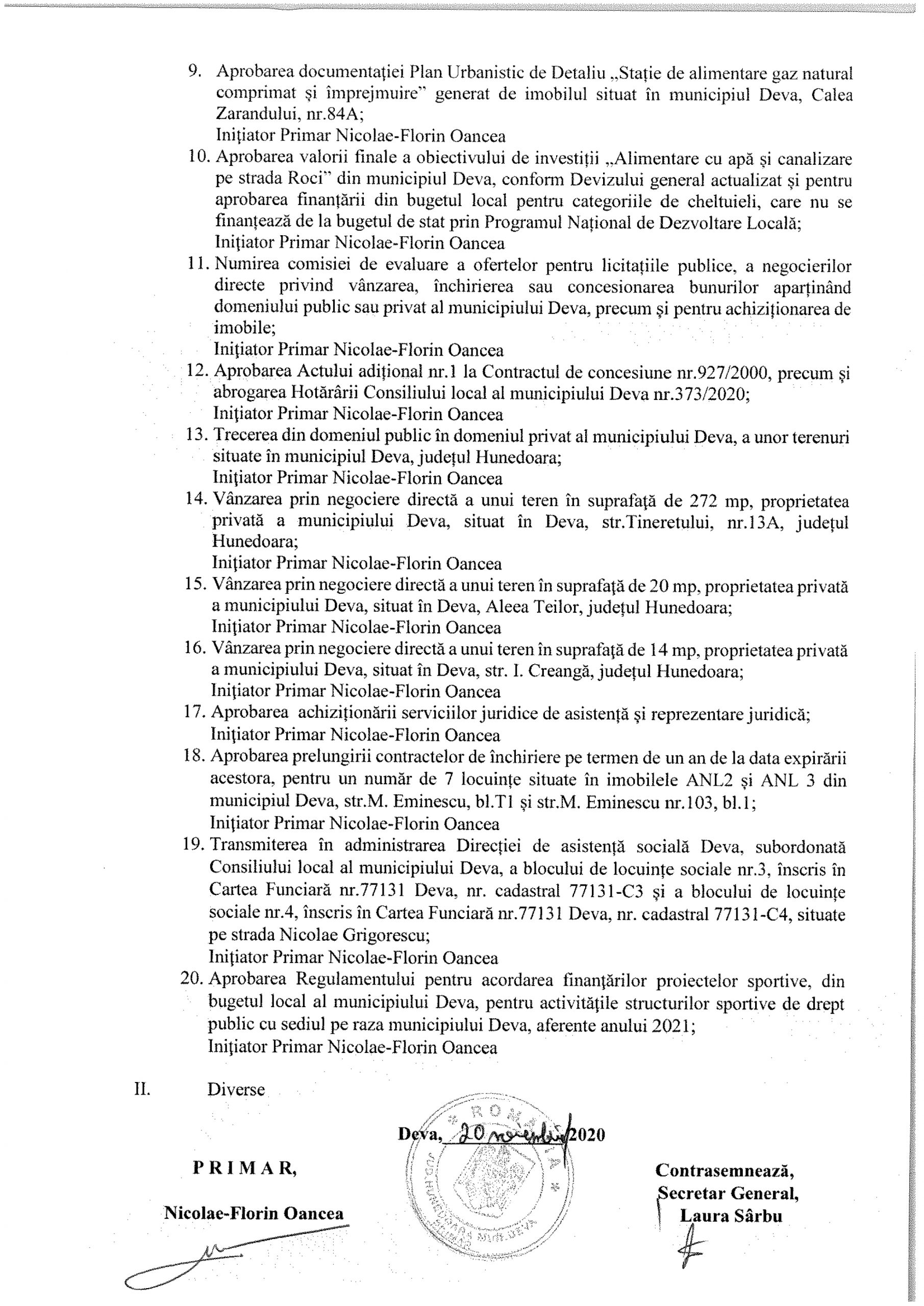 De asemenea, în cursul zilei de azi, 25 noiembrie 2020, ordinea de zi a ședinței ordinare din cadrul Consilului Local a fost suplimentată cu alte trei proiecte de hotărâre:
