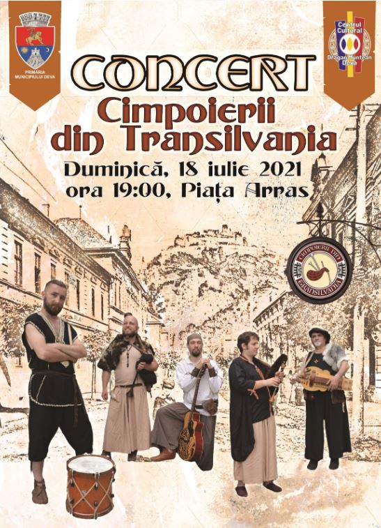 Primăria Municipiului Deva și Centrul Cultural „Drăgan Muntean” Deva vă invită duminică, 18 iulie 2021, ora 19:00, în Piața Arras din Deva, la un concert susținut de Cimpoierii din Transilvania.