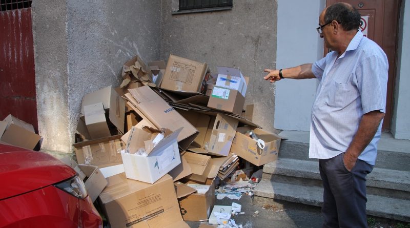 „Nu înţeleg de ce vin să arunce aici, când ei aparţin de altă asociaţie şi ar putea la o adică să îşi depoziteze cutiile lângă propriul sediu”, spune un locatar. Nu sunt doar cutii de carton, ci şi ambalaje de medicamente, bonuri de casă şi gunoiul menajer al societăţii.