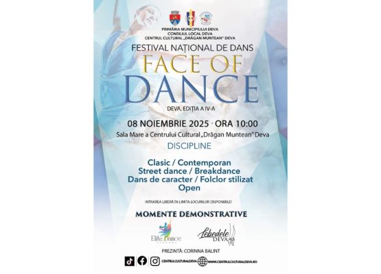 Primăria Municipiului Deva și Centrul Cultural „Drăgan Muntean” Deva invită publicul la cea de-a IV-a ediție a Festivalului Național de Dans „Face of Dance”, un eveniment dedicat tinerilor pasionați de mișcare și artă coregrafică.