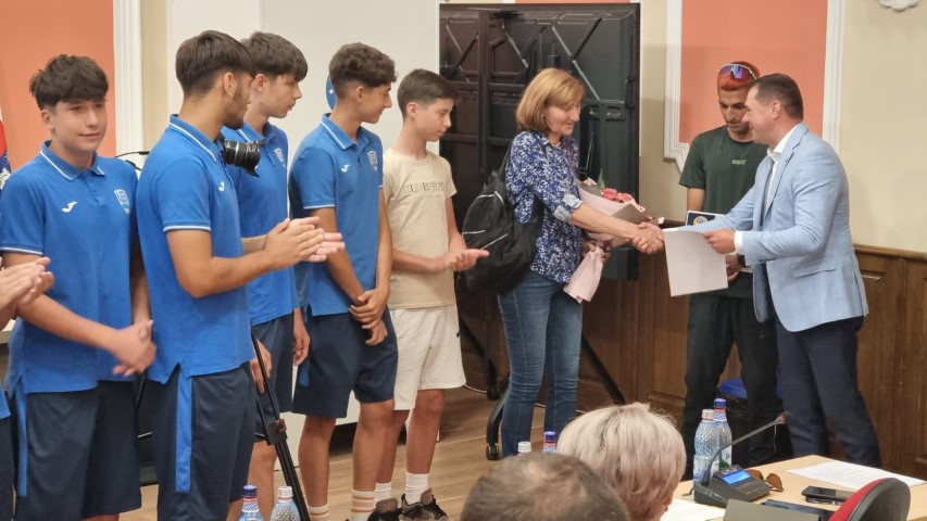 Diplomele au fost oferite echipei de fotbal – grupa U17, alături de antrenorii lor și sportivilor secției de atletism și antrenoarei acestora, pentru performanțele notabile din competiții.
