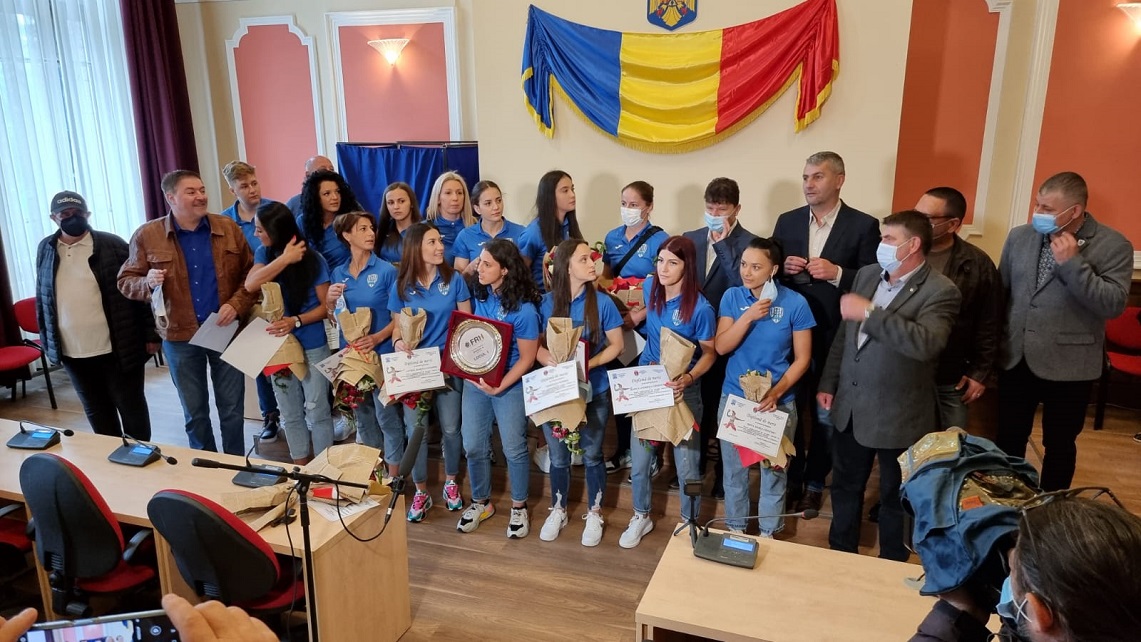 Primăria Municipiului Deva a premiat astăzi echipa de handbal feminin a CSM Deva care a promovat în Liga Florilor.