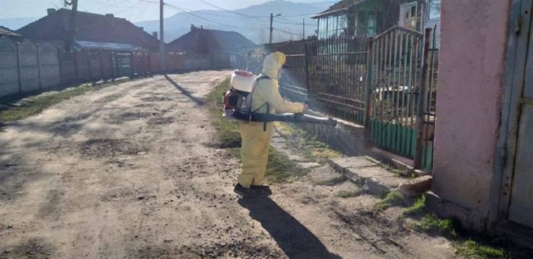 În plină pandemie de coronavirus, când există și voci care susțin că virusul s-ar putea contacta și din particulele de praf, cetățenii sunt în pericol. La Vulcan, se face dezinfecția străzilor de pământ. O imagine ca de pe o altă planetă. Lucrători care sunt costumați în echipamente ca de astronaut și un drum de pământ cu cratere.