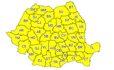 Două coduri de vreme rea au emis meteorologii, în această dimineața. Primul cod se va instala astăzi, în jurul orelor amiezii și va acoperi vestul Carpaților Meridionali.