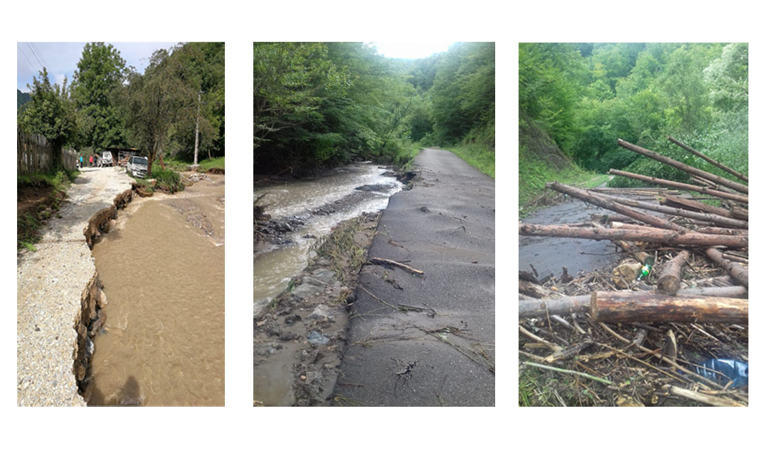 Două drumuri din județ au suferit distrugeri serioase în urma precipitațiilor căzute în după-amiaza zilei de 23 iulie 2018