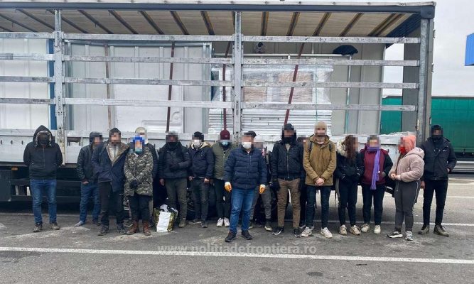 Cu ocazia efectuării controlului, în interiorul compartimentelor de marfă, au fost descoperiţi, ascunși printre marfa transportată, douăzeci şi doi de cetăţeni străini.