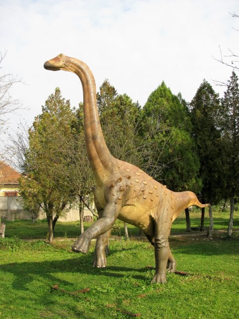 - 5. Magyarosaurus dacus în Geoparc, reconstituire realizată de paleoartistul canadian Brian Cooley