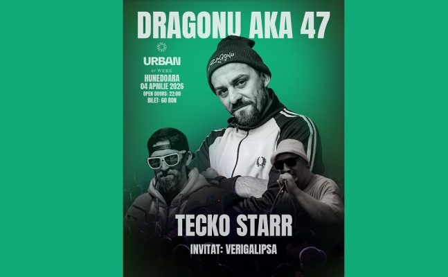 Hunedoara devine, pe 4 aprilie, punctul de întâlnire al fanilor hip-hop, odată cu concertul susținut de „DRAGONU AKA 47”, unul dintre numele cunoscute ale scenei rap din România. Evenimentul va avea loc la Urban by Werk, spațiu devenit în ultimii ani o gazdă constantă pentru concerte și evenimente muzicale.