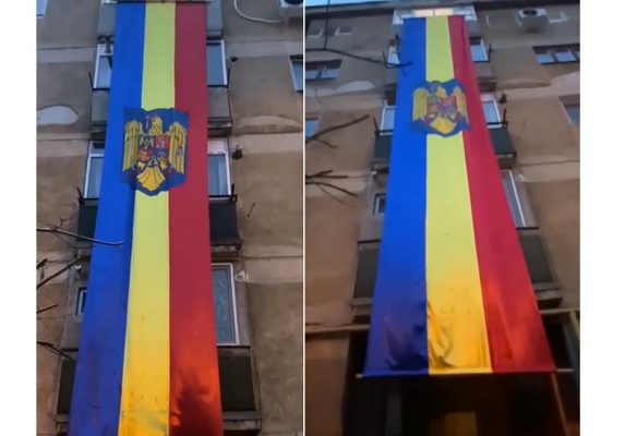 Drapelul este arborat de Marius Darabană de pe fereastra apartamentului. Steagul are o lungime de peste 10,5 metri și o lățime de 1,4 metri.