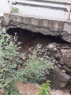 DJ 706 Brad-Țebea – Ilia s-a surpat, pe o porțiune, din cauza precipitațiilor abundente. A fost afectat și un pod de acces spre o gospodărie de pe Valea Mare, informează primarul comunei Baia de Criș, Mihaiu Liviu Gorcea.