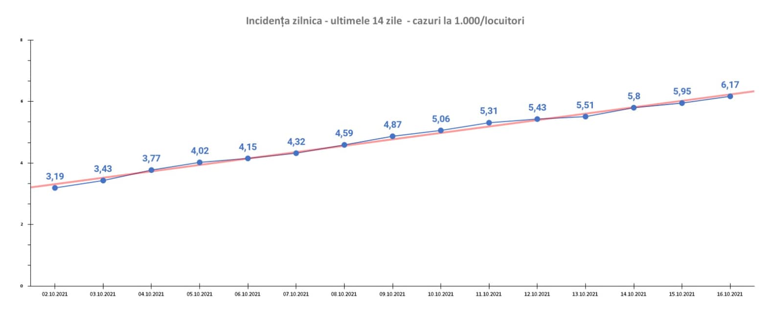 Incidența cazurilor SARS-CoV-2 în județul Hunedoara, la nivel celor 69 de localități – 16.10.2021