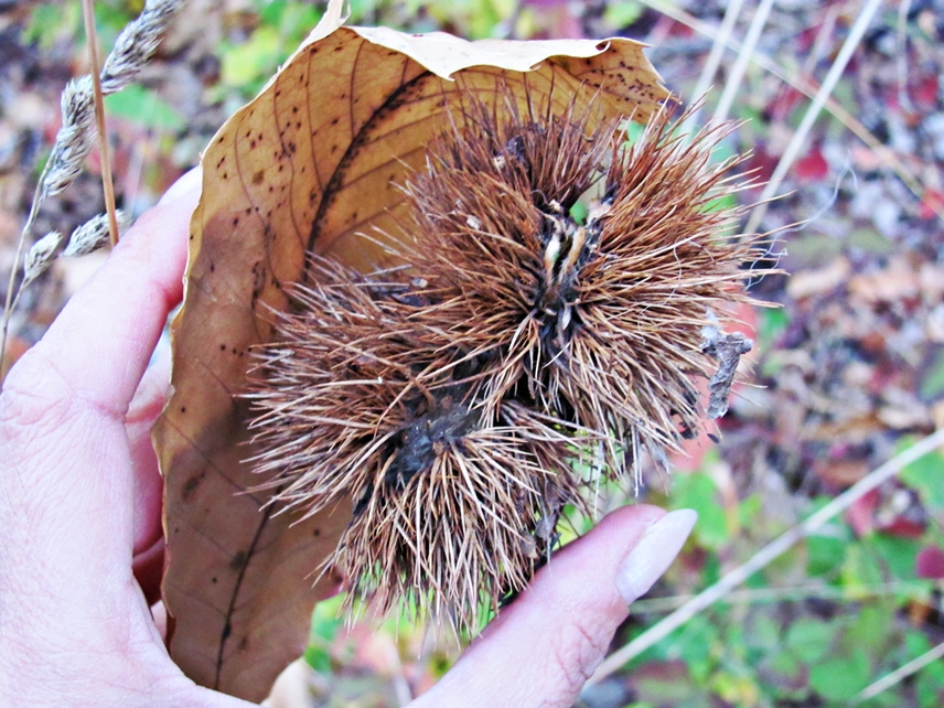 Gubele țepoase ale castanelor sunt seci, pentru că arborii au trecut vara fără apă.