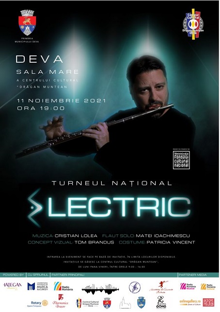Primăria Municipiului Deva și Centrul Cultural „Drăgan Muntean” Deva vă invită joi, 11 noiembrie 2021, ora 19:00, în sala mare a Centrului Cultural „Drăgan Muntean”, la un spectacol electrizant propus de flautistul Matei Ioachimescu, parte a turneului national „Electric”.