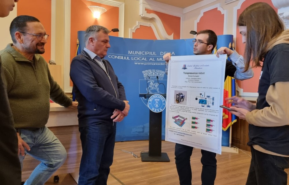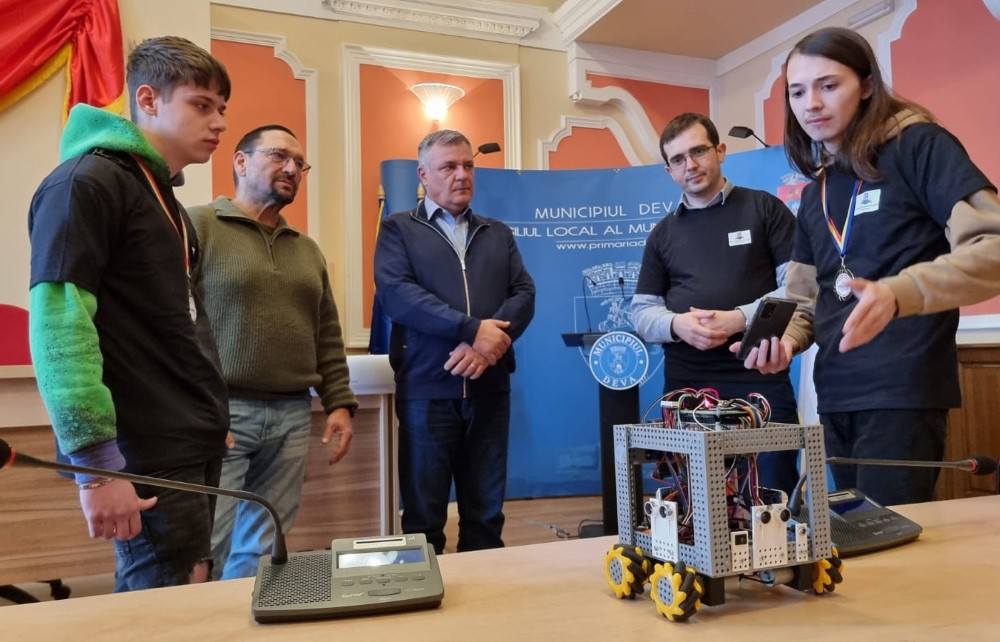 Am avut astăzi bucuria să primesc la sediul Primăriei echipa de robotică a Centrului Județean de Excelență Hunedoara, echipă care a ocupat locul II la Concursul Național ROSEF organizat la Universitatea din Suceava în luna octombrie a anului trecut.