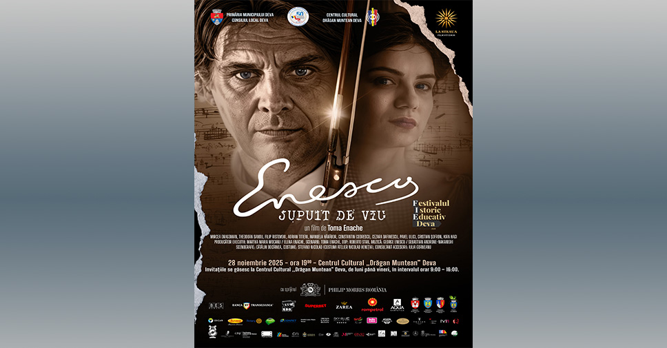 Vineri, 28 noiembrie 2025, de la ora 19:00, sala mare a Centrului Cultural „Drăgan Muntean” Deva va găzdui proiecția de gală a filmului „Enescu jupuit de viu”.