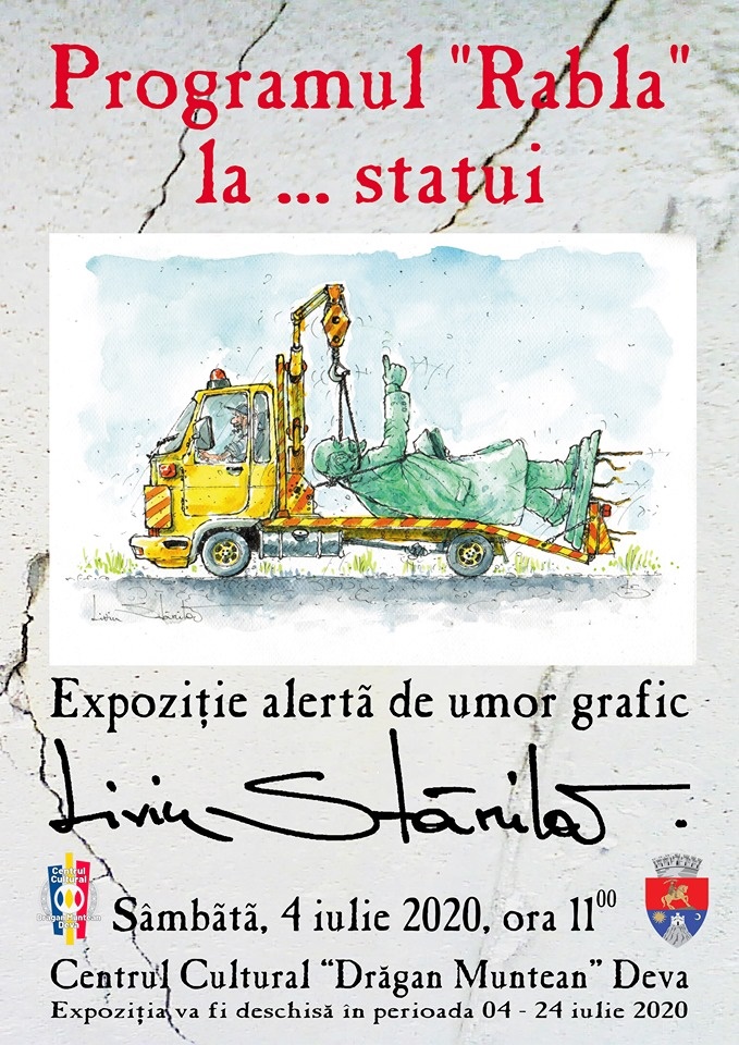 „Programul Rabla la… statui” este titlul unei expoziţii inedite de umor grafic, semnată de caricaturistul Liviu Stănilă, care va fi vernisată sâmbătă, 4 iulie 2020, la ora 11:00, pe platoul din faţa Centrului Cultural „Drăgan Muntean” Deva.