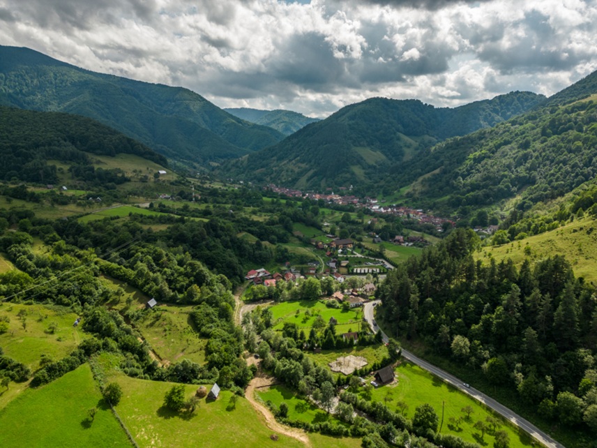 Iar dacă ajungeți în județul Alba, Rimetea și Roșia Montană sunt două opriri obligatorii: primul este un sat montan cu o arhitectură unică și case pictate în alb și verde, iar cel de-al doilea îmbină moștenirea romană a mineritului cu case tradiționale din piatră și lemn, într-un peisaj spectaculos.