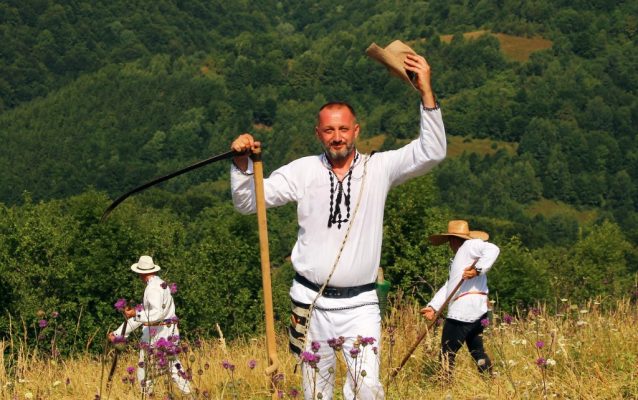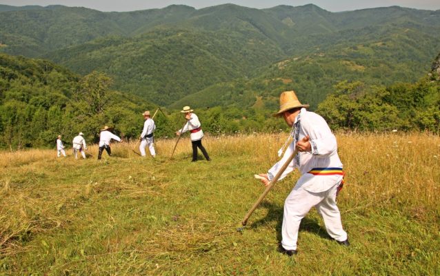 Vara s-a întins până sus, în munte. În Apuseni, fânaţele se leagănă aurii între marginile pădurilor. E vremea coasei şi a strânsului de fân. Şi, în timp ce alte locuri din ţară vuiesc de zgomotul motocoaselor, aici sunt locuri unde oamenii ştiu încă să lucreze cu uneltele tradiţionale, ba mai găsesc şi prilejuri potrivite pentru a se strânge la clacă.