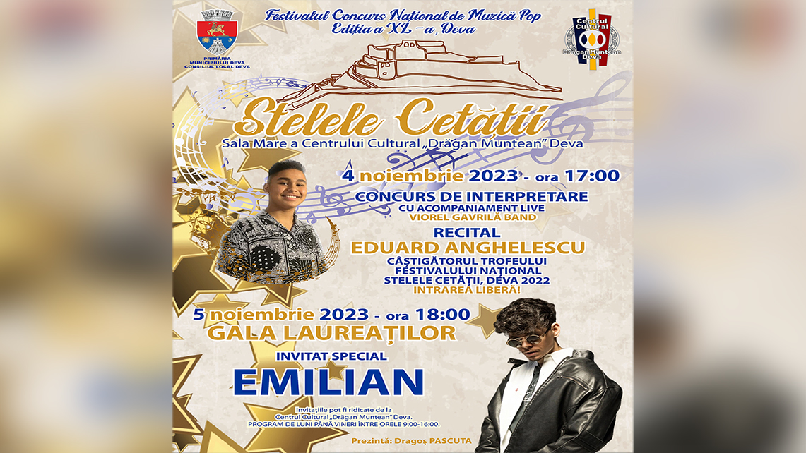 ACTUALITATESTIRI INFO HD 1 FINALA FESTIVALULUI NAȚIONAL „STELELE CETĂȚII” LA DEVA 17 octombrie 2023 Petru Meszaros Finala Concursului de Muzică Pop se va desfășura în perioada 3-5 noiembrie