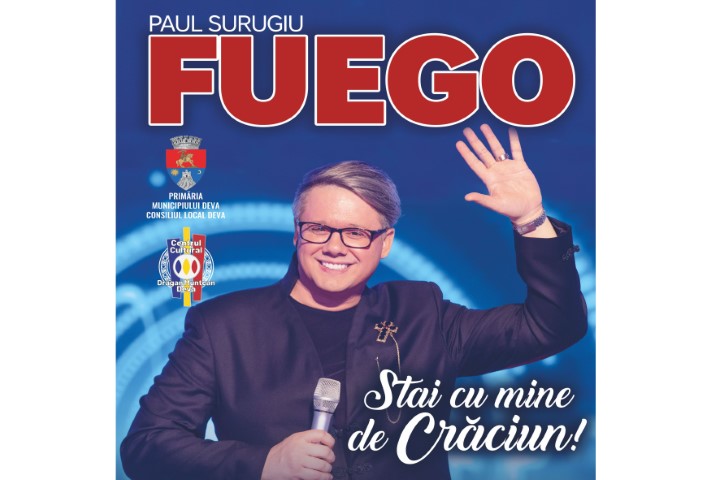 Primăria Municipiului Deva și Centrul Cultural „Drăgan Muntean” Deva, vă invită miercuri, 9 decembrie 2022, lau ora 19:00, în Sala Mare a Centrului Cultural „Drăgan Muntean”, la un concert extraordinar de colinde și cântece de Crăciun intitulat „Stai cu mine de Crăciun”, cu îndrăgitul interpret Paul Surugiu-FUEGO.