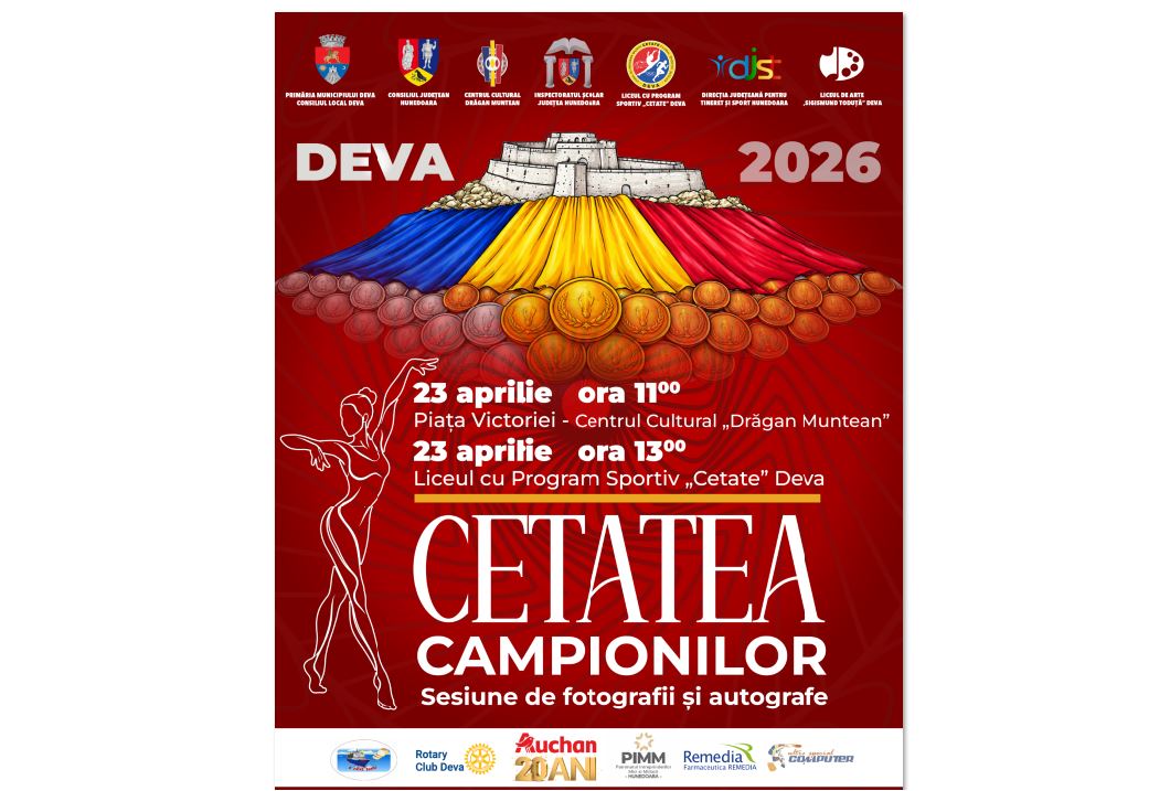 Municipiul Deva devine, joi, 23 aprilie 2026, gazda unui eveniment de excepție dedicat performanței și valorilor sportului românesc – „Cetatea Campionilor”, o întâlnire specială între marile gimnaste ale României și public.