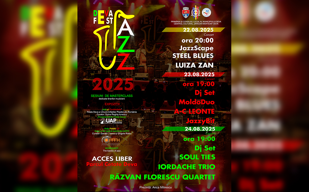 Parcul Cetate Deva se transformă, între 22 și 24 august 2025, într-o scenă plină de energie, emoție și ritmuri de jazz de excepție.