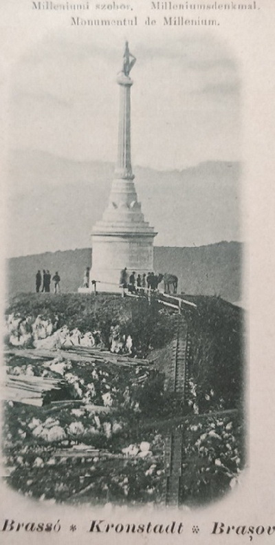 La fel a cazut prada urii si monumentul milenial de la Brasov. Iata-l aici pe o vedere dinainte de primul razboi mondial. O vedere pe care se afla, pe langa cea maghiara si germana, si incriptie romaneasca: https://1.bp.blogspot.com/-pVqzBnQb8ZI/W4-W4jfVyyI/AAAAAAACgws/zoGBoVeiBJQyeMuKyy72yBluOqjwgzBpQCEwYBhgL/s1600/BV%2BMon%2Bmilenium.jpg