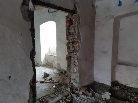 Pe unde odinioară intrau trăsurile şi şaretele călătorilor care poposeau la han, acum vuieşte vântul. Resturile porţilor zac date de pereţi.