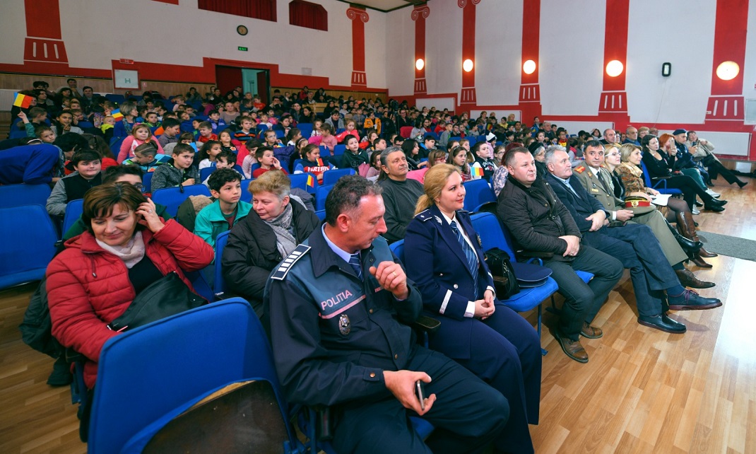 Reprezentanții instituțiilor de mai sus le-au prezentat copiilor rolul important pe care îl au în apărarea țării și a cetățenilor. Apoi, elevii au avut parte de un recital extraordinar prezentat de Tudor Limbeanu, Micul Patriot din Vințu de Jos, care a încălzit inimile publicului prezent în sală. Dascălii școlii au fost felicitați de dl primar Marcel Goia, care a participat la eveniment. De altfel, Primăria Orașului Hațeg derulează în aceste zile numeroase activități la care sunt invitați toți hațeganii, pentru a sărbători Centenarul.