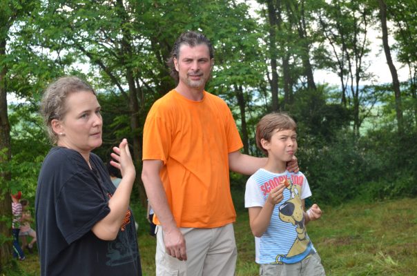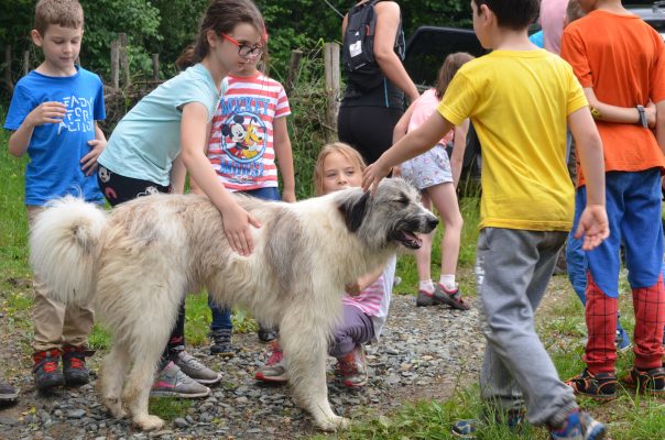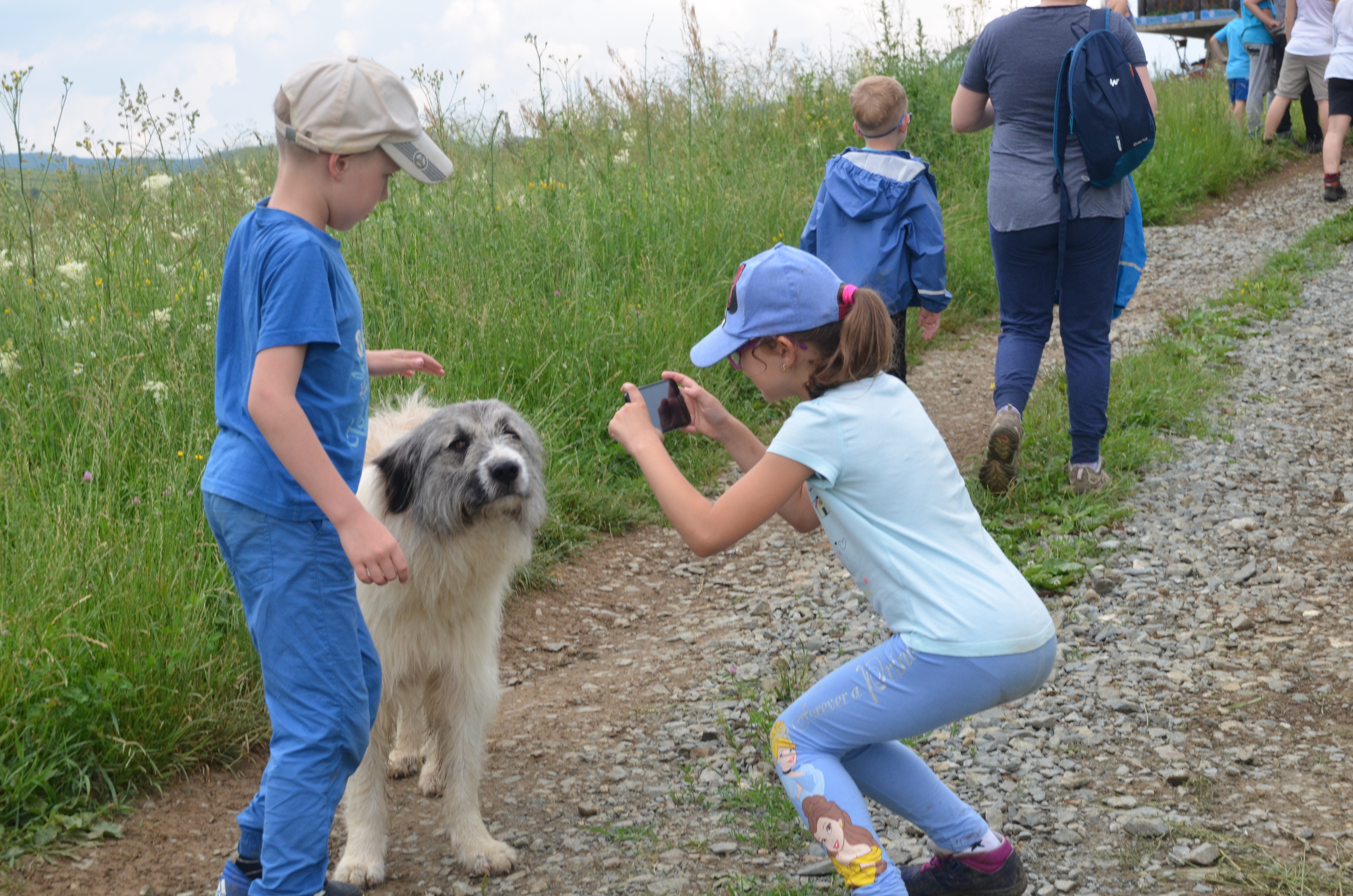 Copiii, după ce s-au săturat, s-au jucat în voie cu cei doi câini lânoși de stână foarte cuminți și prietenoși cu toată lumea. De asemenea, Alessandro și Carmen, cei doi copii ai familiei Mușat le-au ținut companie pe tot pracursul acestei vizite. Băiatul trece la toamnă în clasa a IV-a, iar fetița în clasa I-a. Sunt atât de dezinvolți și sociabili, cum rar mai vezi. Erau foarte bucuroși și asta se vedea pe chipul lor frumos că pot să le împărtășească în timpul petrecut împreună despre preocupările din grădina lor. Extrem de atenți se comportau ca niște ghizi adevărați.